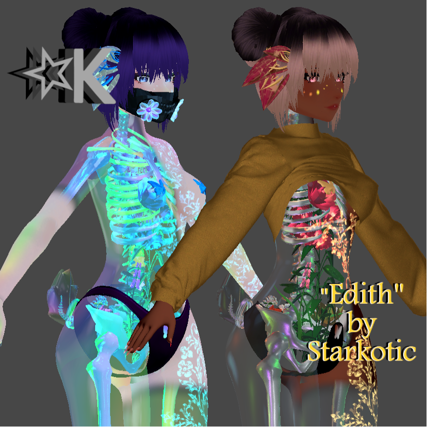"Edith" Flower Skeleton Avatar Physbones Female (2 material versions included.)